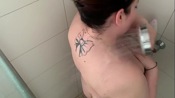 Beautiful latina is taking a shower and and recording herself to upload her video to social media