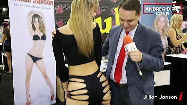 Jillian Janson engages in clitoral stimulation as a male engages in a doggy-style sexual activity.