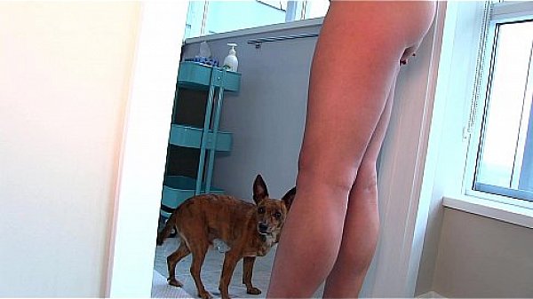 Two-lens shooting of a full dress in a public toilet and a young woman masturbating in underwear