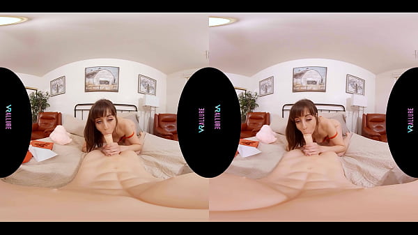 Naughty redhead with huge tits masturbating with a big vibrator until she orgasms in virtual reality